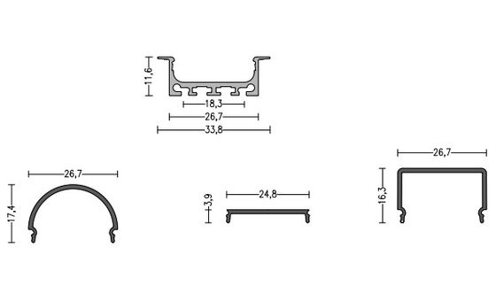 33.8mm(W) LED-Lampengehäuse für LED-Streifen Anodisiertes Aluminium mit 3 Arten Abdeckung Einbauteile Aluminium-LED-Profil