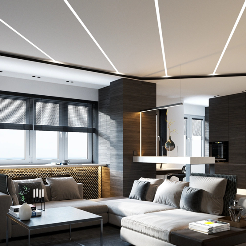 LED-Aluminiumprofile eignen sich beispielsweise für. An der Unterkante der Küchenschränke, eine Arbeitsplattenbeleuchtung und oben zur Schaffung einer indirekten Beleuchtung, Heimbeleuchtung, Treppenbeleuchtung und indirekte Beleuchtung. Badezimmer und Saunen zur Beleuchtung, Hotel-, Restaurant- und Ausstellungsbeleuchtung. Ladenregale zum Beleuchten und Fahnenlichter.