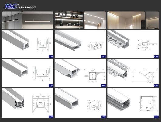 KC Lighting is a leading LED aluminum profile manufacturer in China, producing over 200 high-quality types of LED aluminum profiles and extrusions at factory prices. We offer surface-mounted, recessed, pendant, corner, round, stair, wall, trimless, up-down, driver-in, and flexible versions. Free samples available for quality evaluation.
